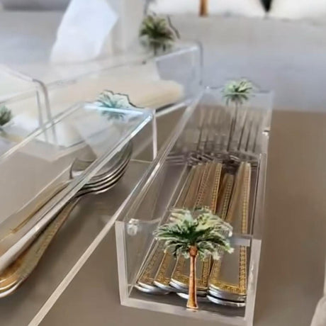 بوكس أكريليك لحفظ المعالق و السكاكين – تصميم النخيل الفاخر
