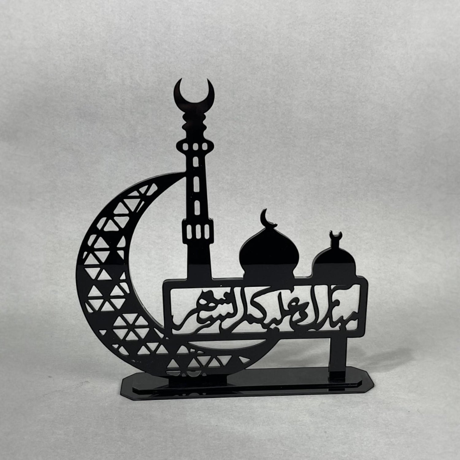 🌙تصميم المئذنة والهلال - أكريليك فاخر - شفاف مع أسود هذا المنتج مطلوب مسبقاً وسيتم شحنه فور توفره في المخزون