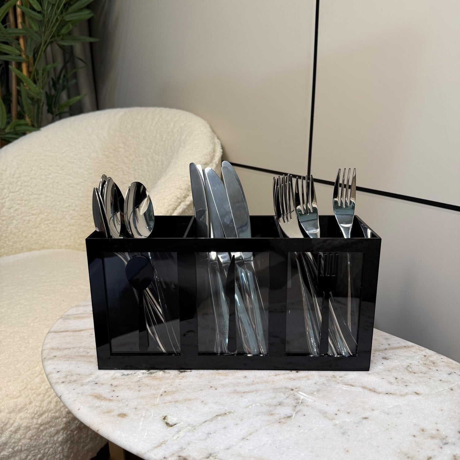 منظّم أدوات السفرة ثلاثي | أبيض، أسود، رصاصي